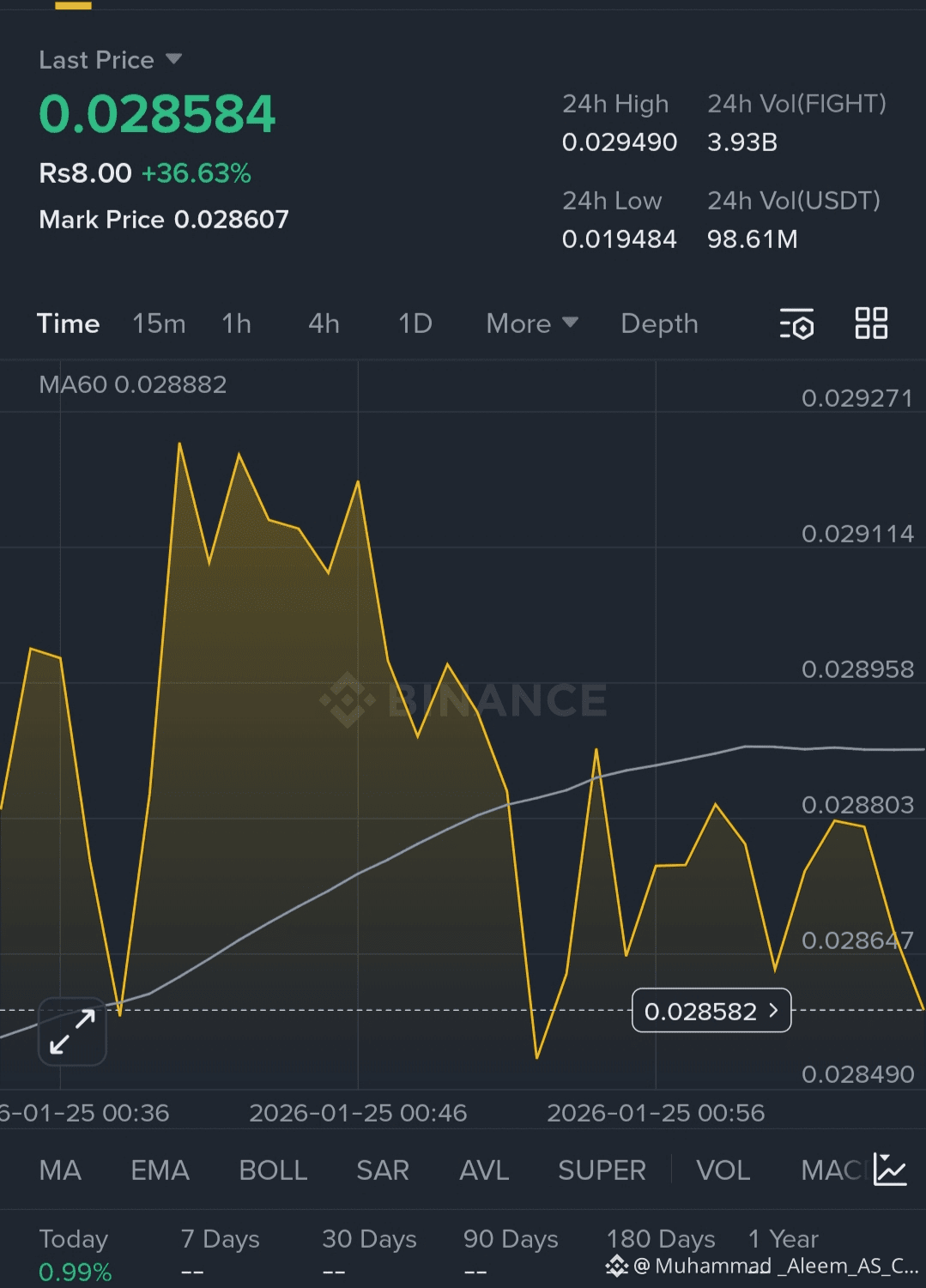 FIGHT is waqt distribution nahi, balki Price Discovery mode mein hai. RSI neutral territory mein consolidate ho raha hai, jo ek bade breakout se pehle ka sukoon hai. Inka "Prize$Fight" bounty program aur upcoming staking (Q1 2026) supply ko lock karne wala hai. Jab volume $300M+ sustain karta hai, toh ye saaf ishara hai ke whales positions build kar chuki hain.