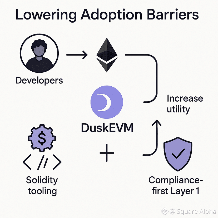 Developer adoption is frequently slowed by proprietary programming languages or custom execution models. DuskEVM removes these barriers by enabling existing Ethereum developers to seamlessly integrate their applications on Dusk. This reduces friction, accelerates real-world usage, and increases $DUSK utility through transactional and staking activity.