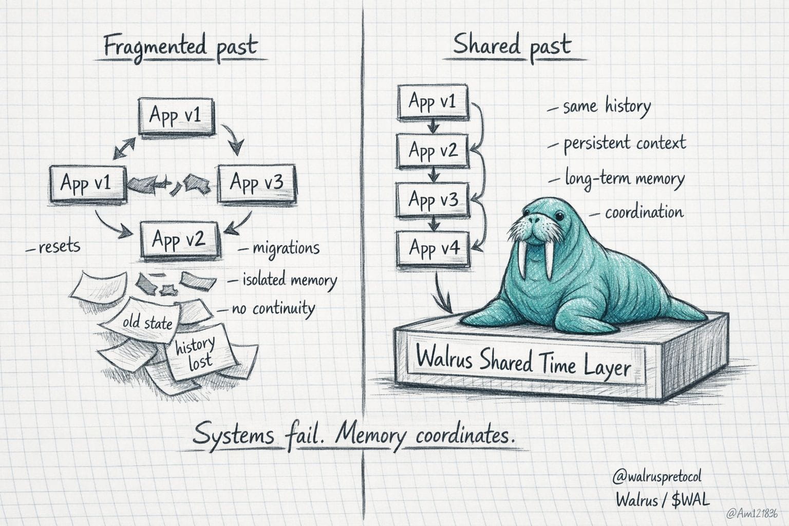 Esta es una diferencia sutil pero estructural frente al modelo tradicional de Web3, donde cada aplicación vive en su propio presente perpetuo. Walrus convierte el pasado en infraestructura común. No como archivo pasivo, sino como una capa activa que alinea expectativas, reduce fricción y permite cooperación entre actores que no se conocen ni confían entre sí.
