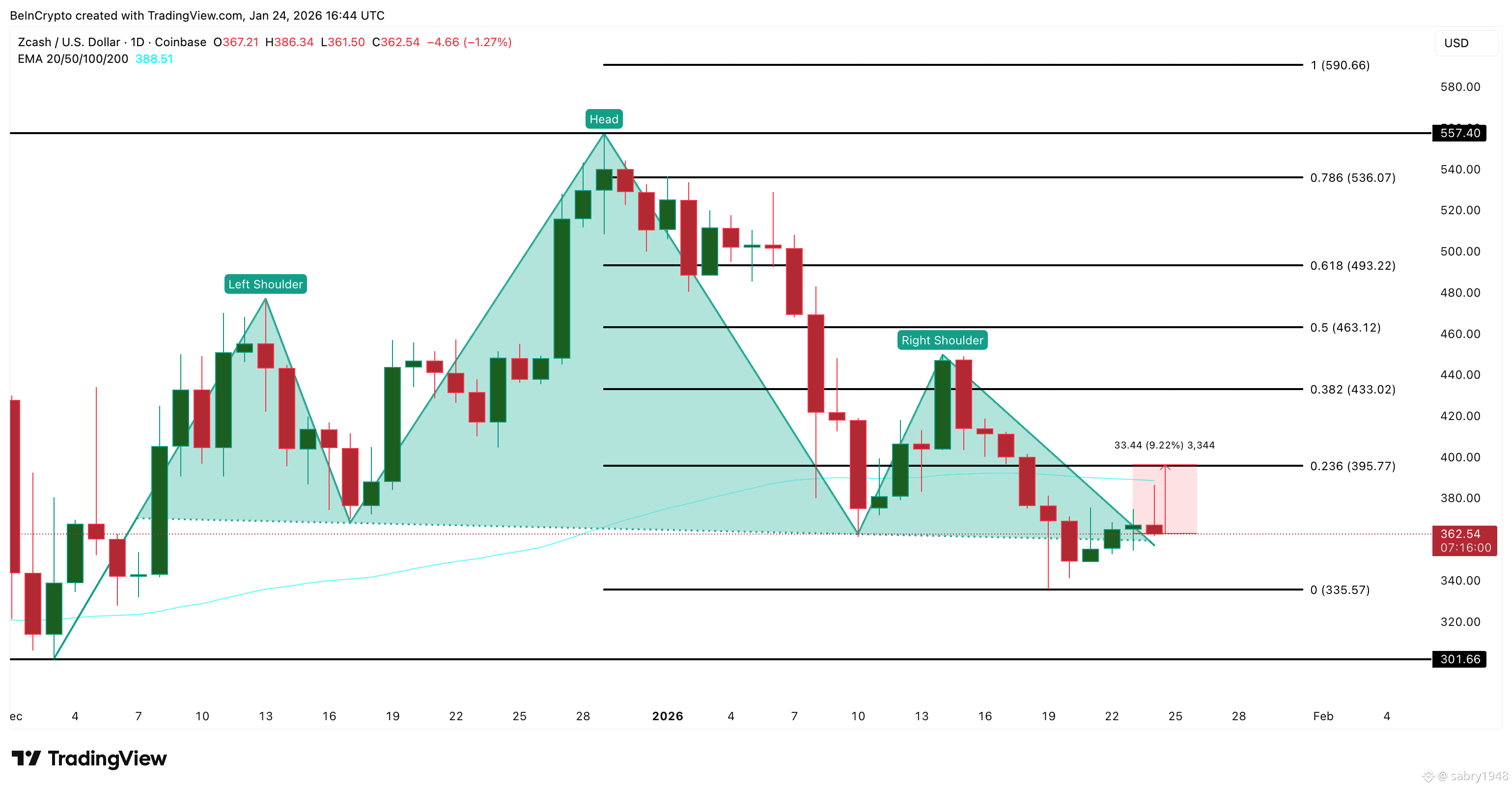 قام سعر زيكاش بشيء مهم بعد أسابيع من الضعف. منذ 19 يناير، ارتد سعر ZEC بنسبة تقارب 15%، مرتفعاً من أدنى مستوى انهيار قريب من 336 دولار إلى حوالي 362 دولار. جاء هذا التحرك بعد أيام قليلة من تأكيد كسر نمط هبوطي، وهو بالضبط النوع من الإعداد الذي غالباً ما يحاصر البائعين العدوانيين.