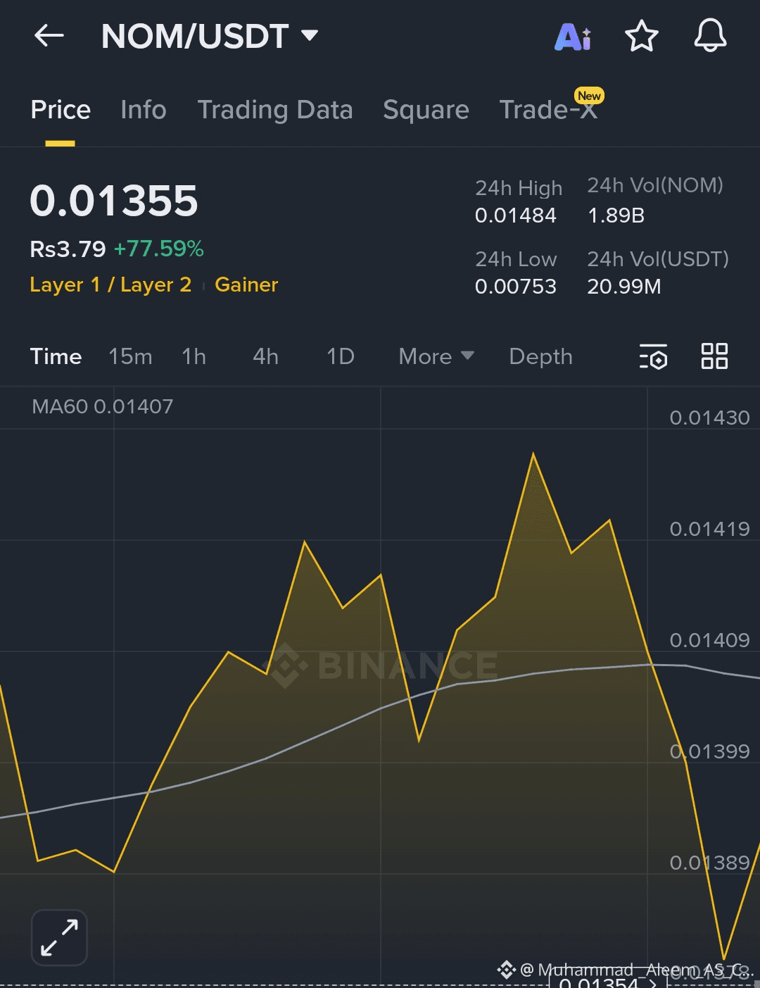 NOM is waqt distribution nahi, balki Re-accumulation Energy dikha raha hai. Daily chart par RSI neutral territory se recover ho kar bullish divergence dikha raha hai, jo ek naye uptrend ka precursor hai. Inka naya Trading Terminal Update (limit orders, APR + leverage search) platform ki utility ko real-time traders ke liye "Gold Standard" bana raha hai. Jab tak $0.0080 ka major support hold hai, momentum targets ki taraf violent acceleration dikhayega.