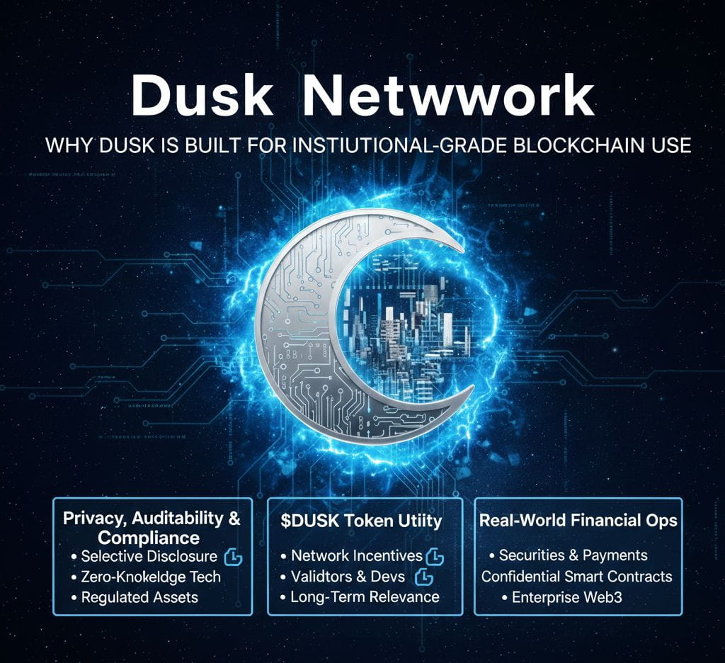Большинство блокчейнов были спроектированы с приоритетом на прозрачность, но учреждения требуют конфиденциальности, возможности аудита и соблюдения норм. @Dusk подходит к блокчейну с этой институциональной точки зрения, фокусируясь на инфраструктуре, которая может поддерживать реальные финансовые операции, такие как ценные бумаги, платежи и регулируемые активы.