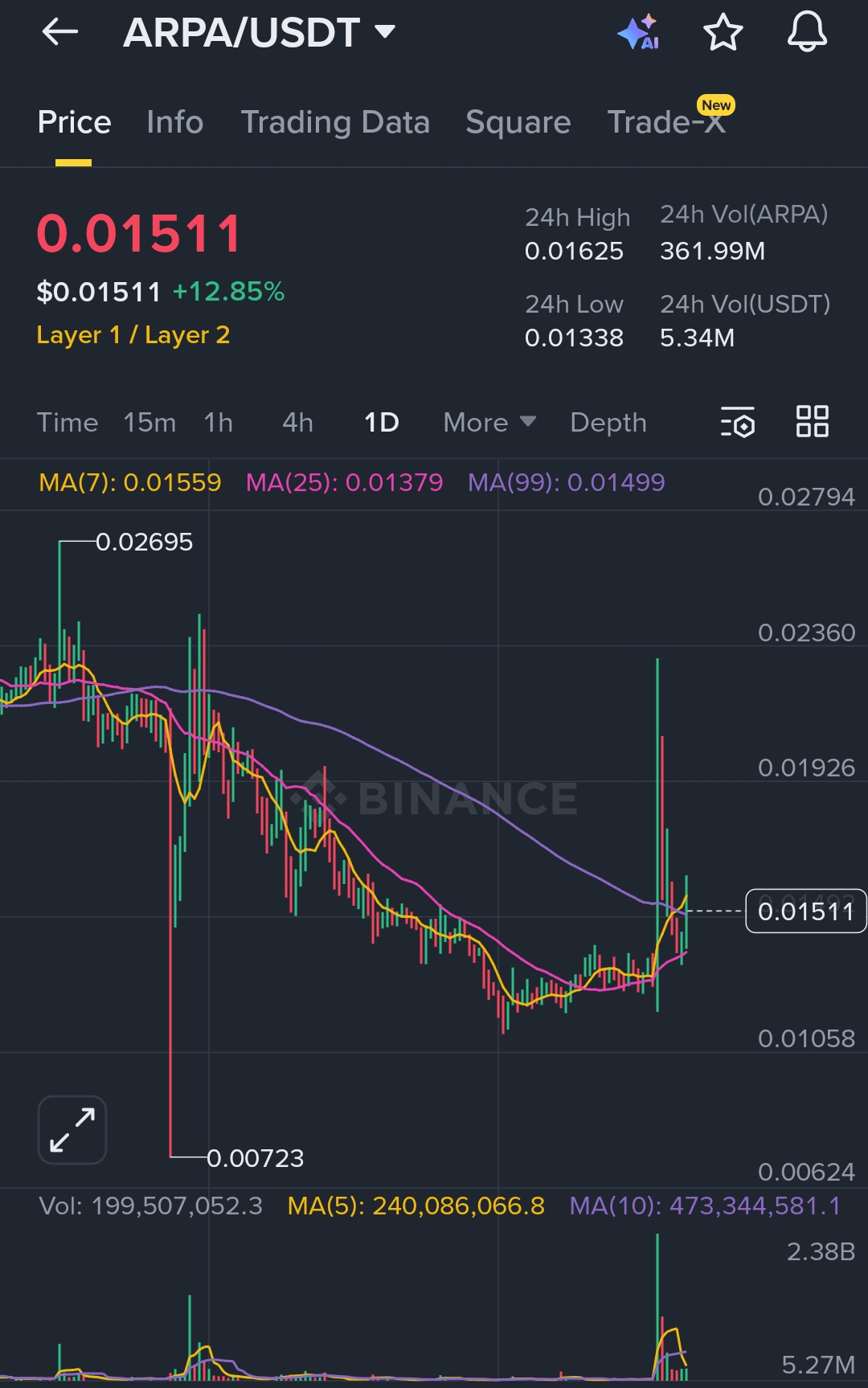 ARPA в настоящее время находится на уровне "Сделать или сломать" на 0.0150. Если он удержит этот уровень, он может восстановиться до $0.018. Если он потеряет этот уровень, вероятно, он упадет обратно до $0.0138.