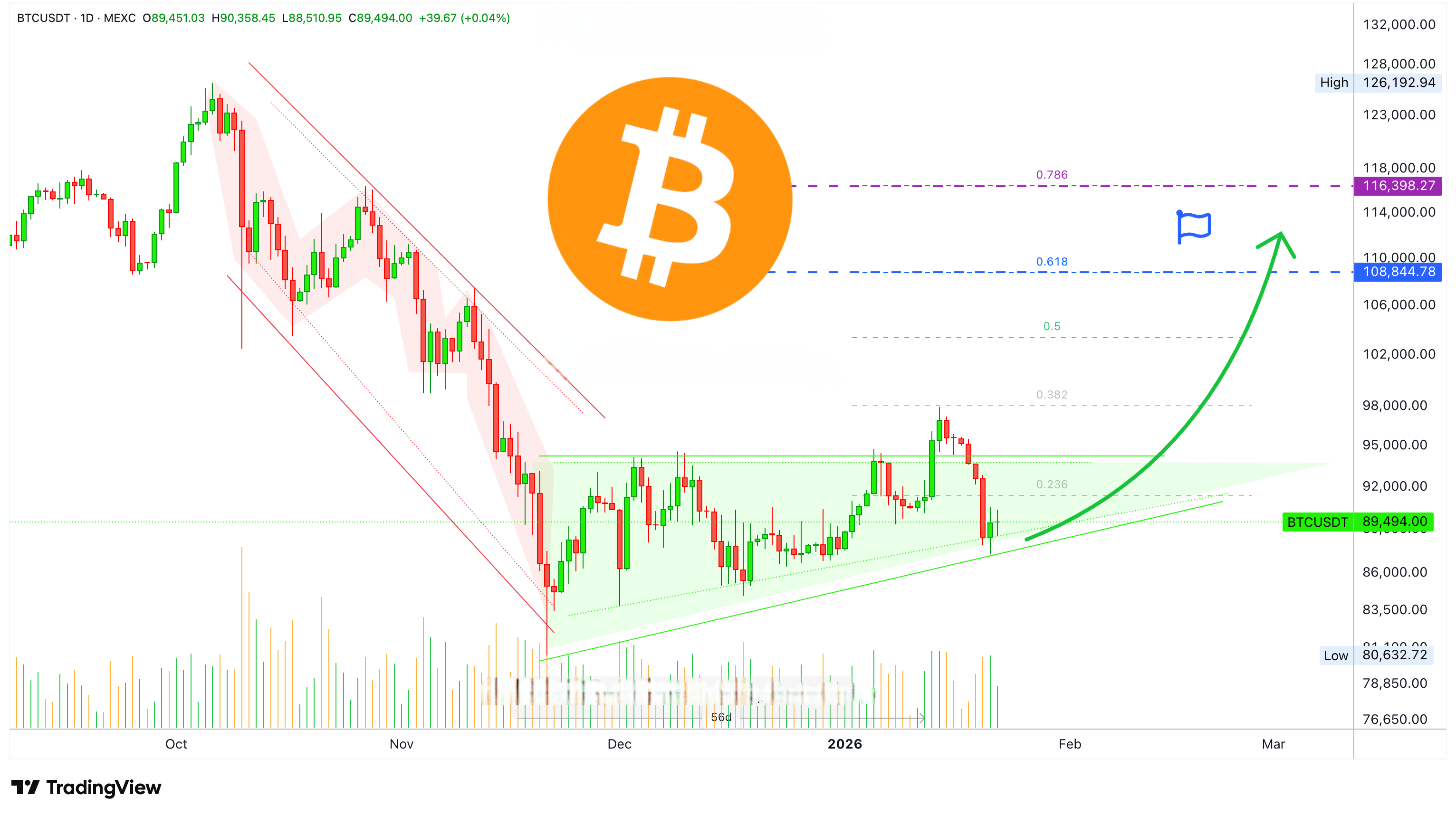 Самый низкий уровень Биткойна составил $87,277 вчера, и вы можете видеть, как легко это окончательный минимум. В прошлом месяце он был $86,400, 24-дек, в этом месяце он составляет ~$87,000.