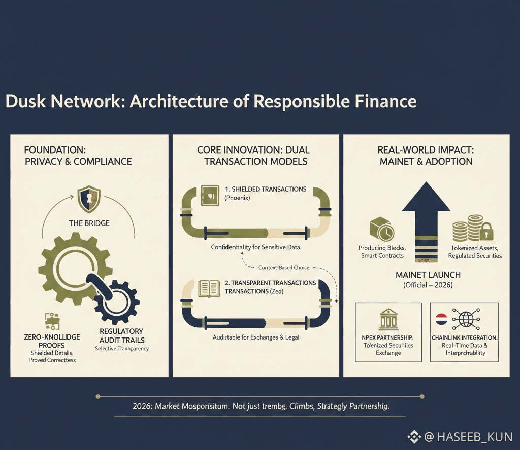 Dusk doesn’t want full anonymity. It wants privacy with responsibility. That’s why it has two transaction models. One keeps details shielded but still proves correctness. The other makes things transparent and auditable for exchanges and legal requirements. This mix reflects real human life not one size fits all, but choices based on context.