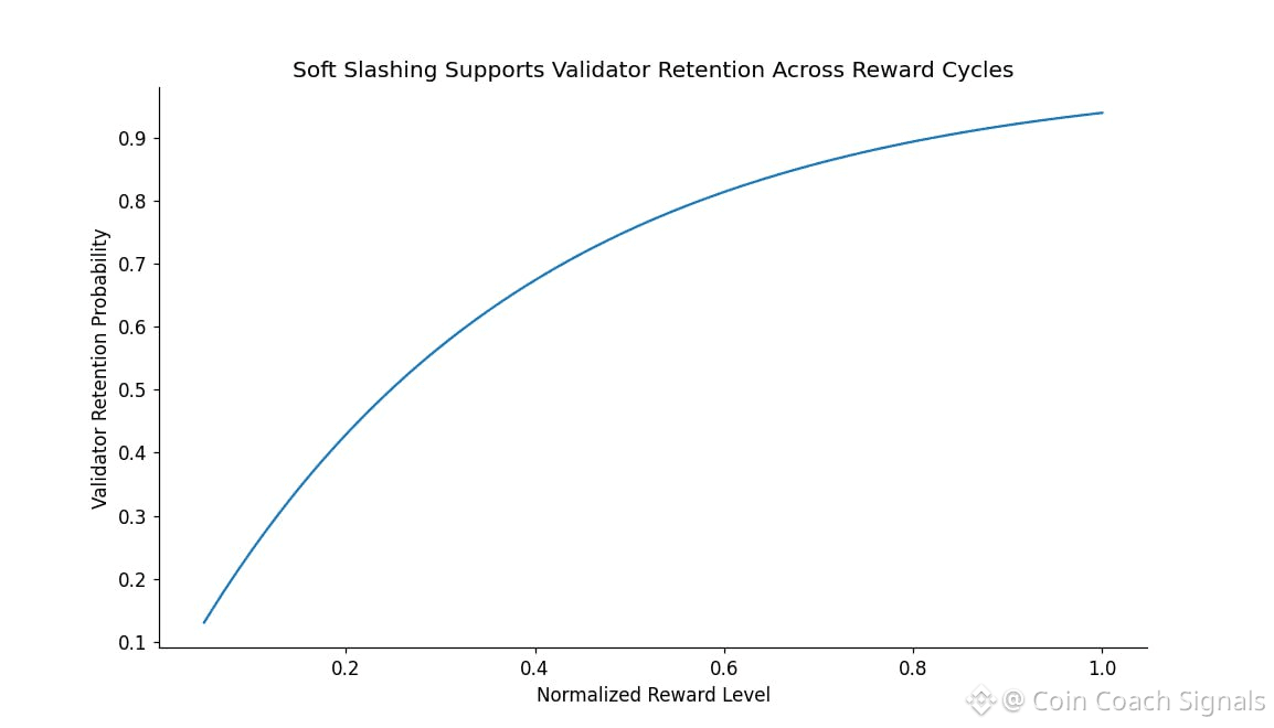 Slashing is also handled with restraint. Instead of burning stake immediately, #Dusk uses soft penalties. This works because a validator who misbehaves sees part of their stake sidelined temporarily, with penalties escalating if behavior repeats. The idea is to correct behavior without nuking operators for single mistakes. That’s friendlier to smaller participants, but it also means deterrence relies more on reputation and long-term incentives than fear of instant loss.