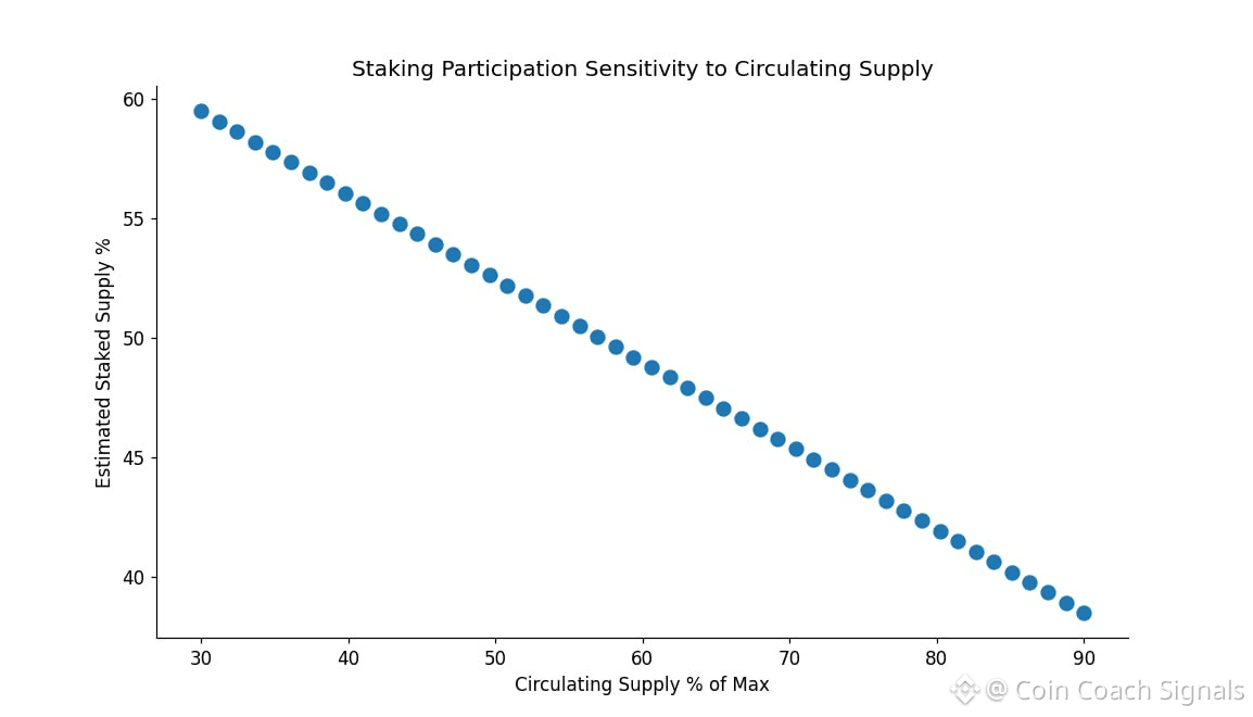 As of early 2026, roughly half the total supply is circulating, with the rest scheduled to enter over time. That matters. It means there’s still dilution ahead, but it’s visible and paced. Staking participation sitting around forty percent suggests that, for now, enough holders are comfortable committing capital instead of dumping rewards immediately. That’s a healthier signal than price spikes.