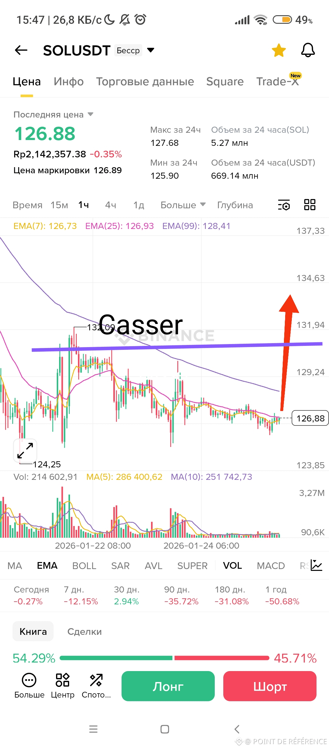 EMA(7/25/99) $126.73 / $126.93 / $128.41 Объём (24h) 5.27 млн SOL / $669.14 млн USDT |