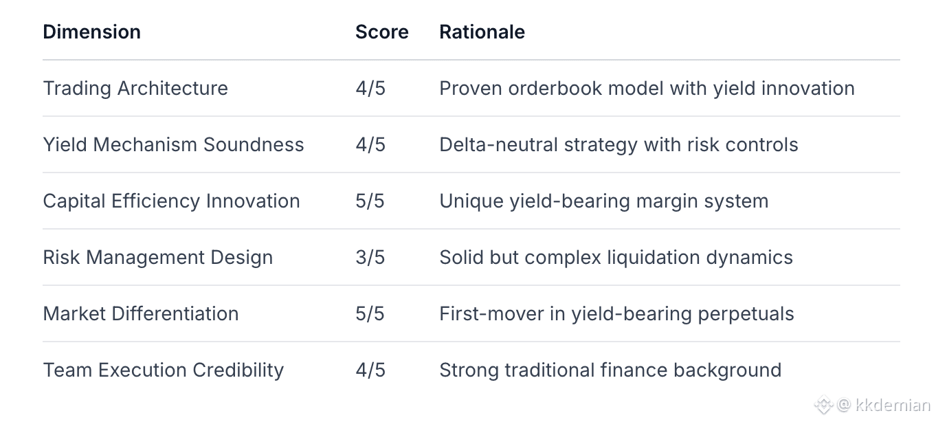 Capital Efficiency Assessment: The protocol's Volume/TVL ratio of 35x (30-day) significantly exceeds traditional perpetuals venues, indicating superior capital utilization through the yield-bearing margin system.