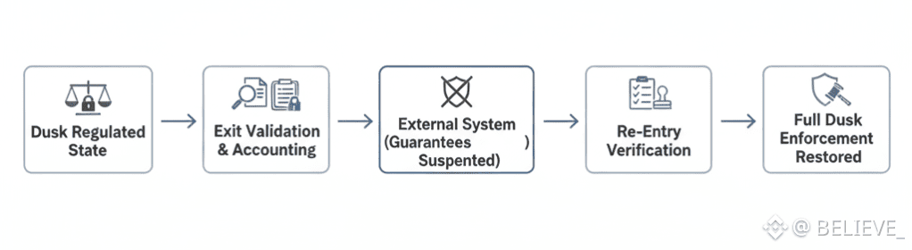 Importantly, this does not mean Dusk is isolationist. It means interoperability is intentional rather than opportunistic. The protocol is open to interaction where guarantees can be preserved or cleanly suspended, not where they are quietly eroded.