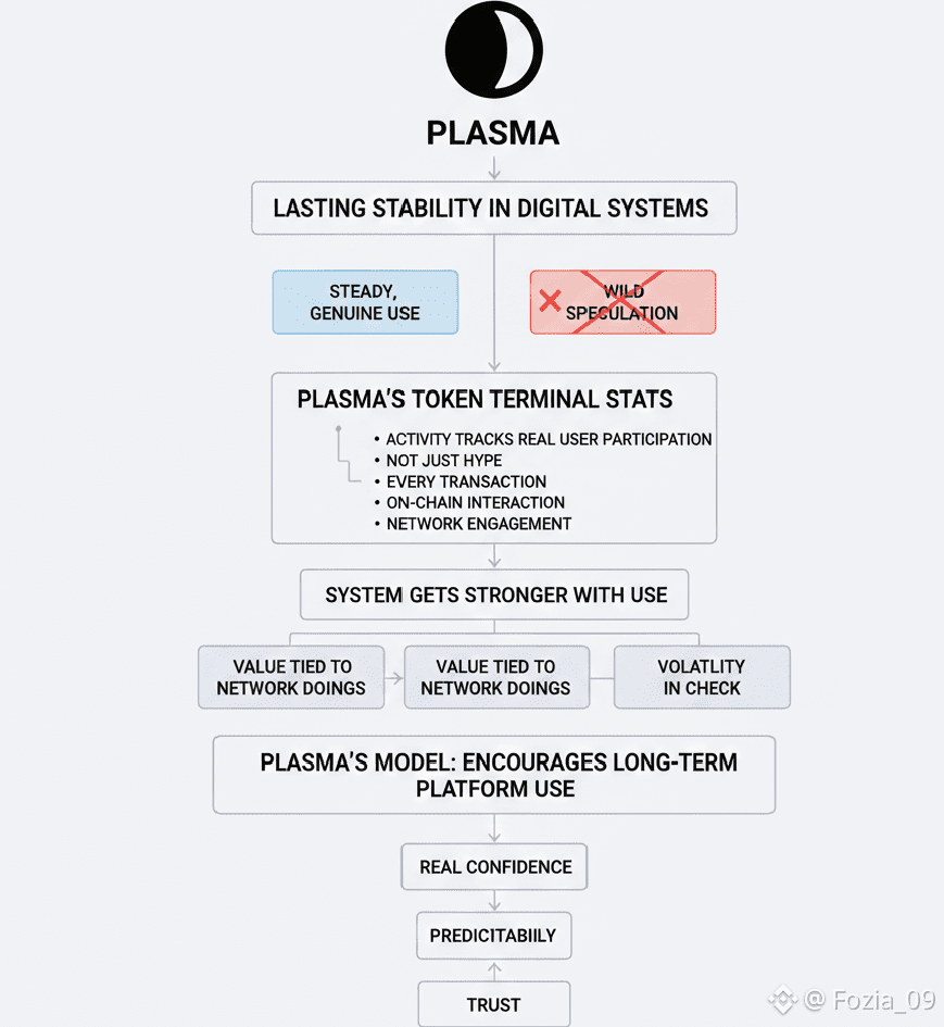 systems comes from steady,genuine use not from wild speculation.Take a look at its Token Terminal stats:Plasma’s activity tracks closely with real user participation,not just hype that fizzles out.Every transaction,every on chain interaction,every bit of network engagement these build a system that actually gets stronger the more people use it.By tying value to what the network does,not just to a story,Plasma keeps volatility in check.