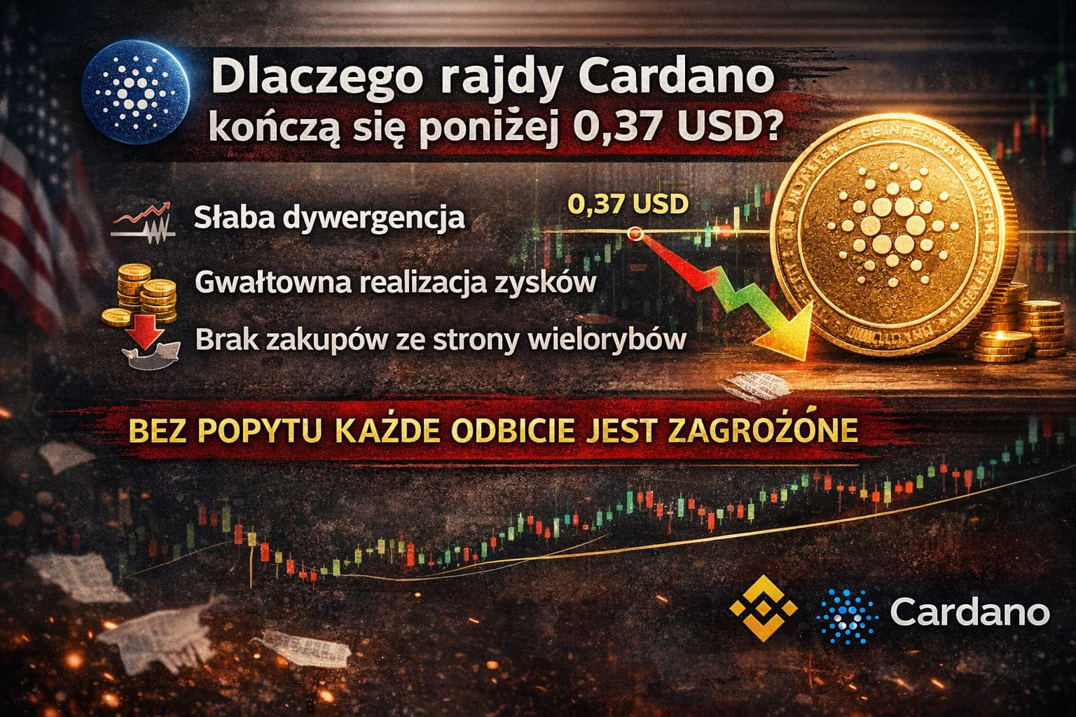 Цена Cardano уже несколько недель повторяет одну и ту же схему. Краткое восстановление, быстрое замедление и отсутствие продолжения восходящего тренда. Последний восходящий движение с 20 января принес около 7%, но снова остановился в зоне 0,35–0,37 USD. Это не было прорывом, а лишь техническим восстановлением.