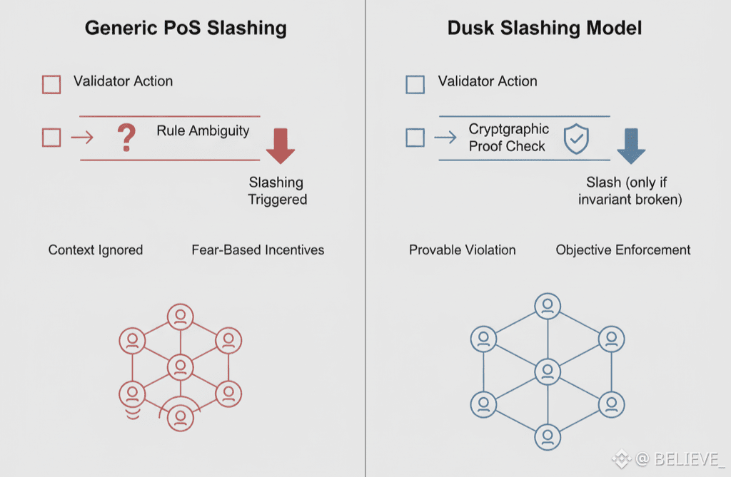 What ultimately sets Dusk apart is its refusal to weaponize slashing. It does not use penalties to scare participants into compliance. It uses them to anchor trust in objective proof.