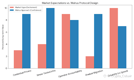 I think that’s what finally clicked for me. Walrus doesn’t feel like it’s trying to win an argument. It feels like it’s trying to hold up under questioning—by auditors, by operators, by people who have to explain failures, not just successes.