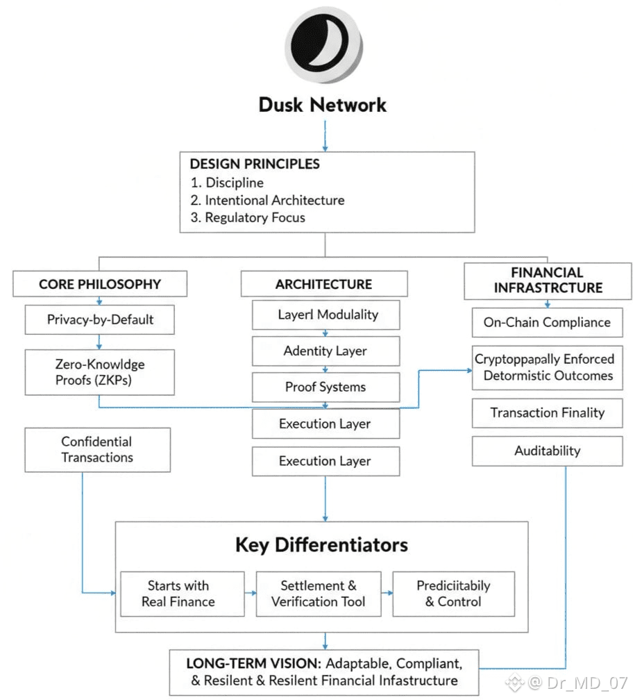 When I look at blockchain projects with a long-term, institutional mindset, discipline stands out as the first thing I pay attention to. Not how fast they move, not how loud their marketing is, not even how flashy their technology looks. What matters is how restrained and intentional their architecture feels. Dusk Network shows this discipline everywhere you look. It isn’t some protocol that just stumbled into existence. The team built it with purpose, keeping the realities of regulated finance front and center.