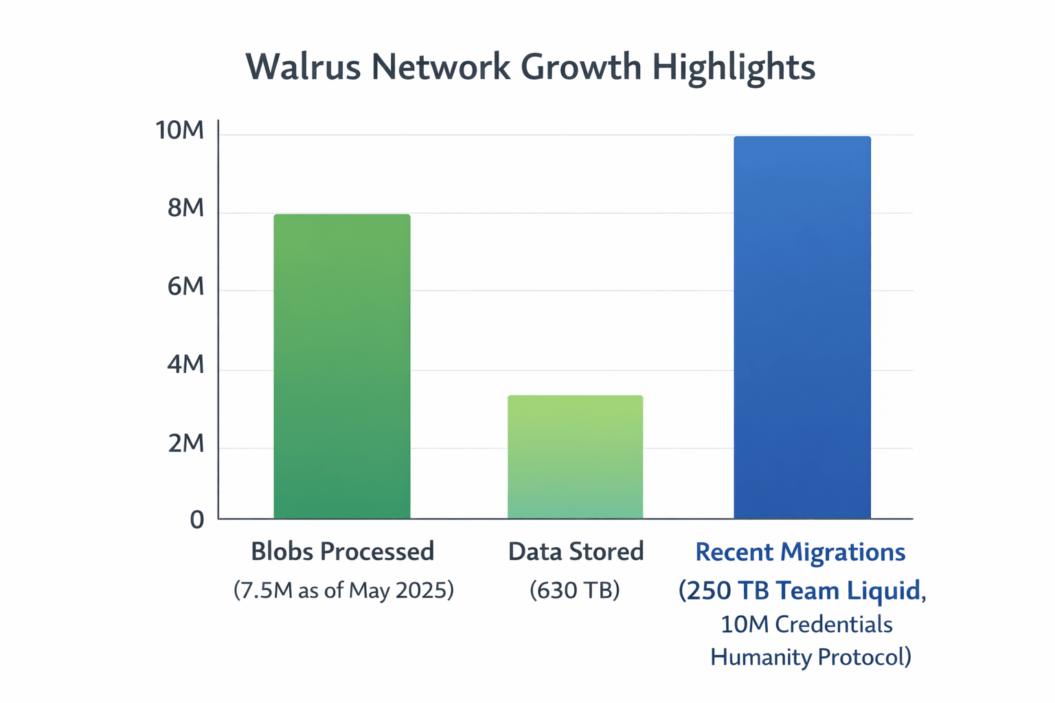 Вот как это работает. Walrus использует двумерную систему кодирования стирания — по сути, он разбивает файлы на маленькие кусочки (они называют их «слайсами») и распределяет их по более чем ста независимым узлам хранения. Это снижает обычные накладные расходы на репликацию до 4,5x, значительно ниже старого стандарта 25x. А если до 55% этих слайсов выйдут из строя? Никаких проблем, вы все равно сможете восстановить свои файлы. Таким образом, вы получаете серьезную отказоустойчивость и затраты, которые конкурируют с крупными игроками Web2. По состоянию на май 2025 года Walrus уже обработал 7,5 миллиона блобов — 630 терабайт реальных данных, находящихся в дикой природе. А к январю 2026 года такие крупные компании, как Team Liquid, перенесли более 250 терабайт видео киберспорта на Walrus, используя мета-тегирование на основе ИИ для мгновенного поиска. Никакой единой точки отказа, только плавное корпоративное хранилище, которое работает.