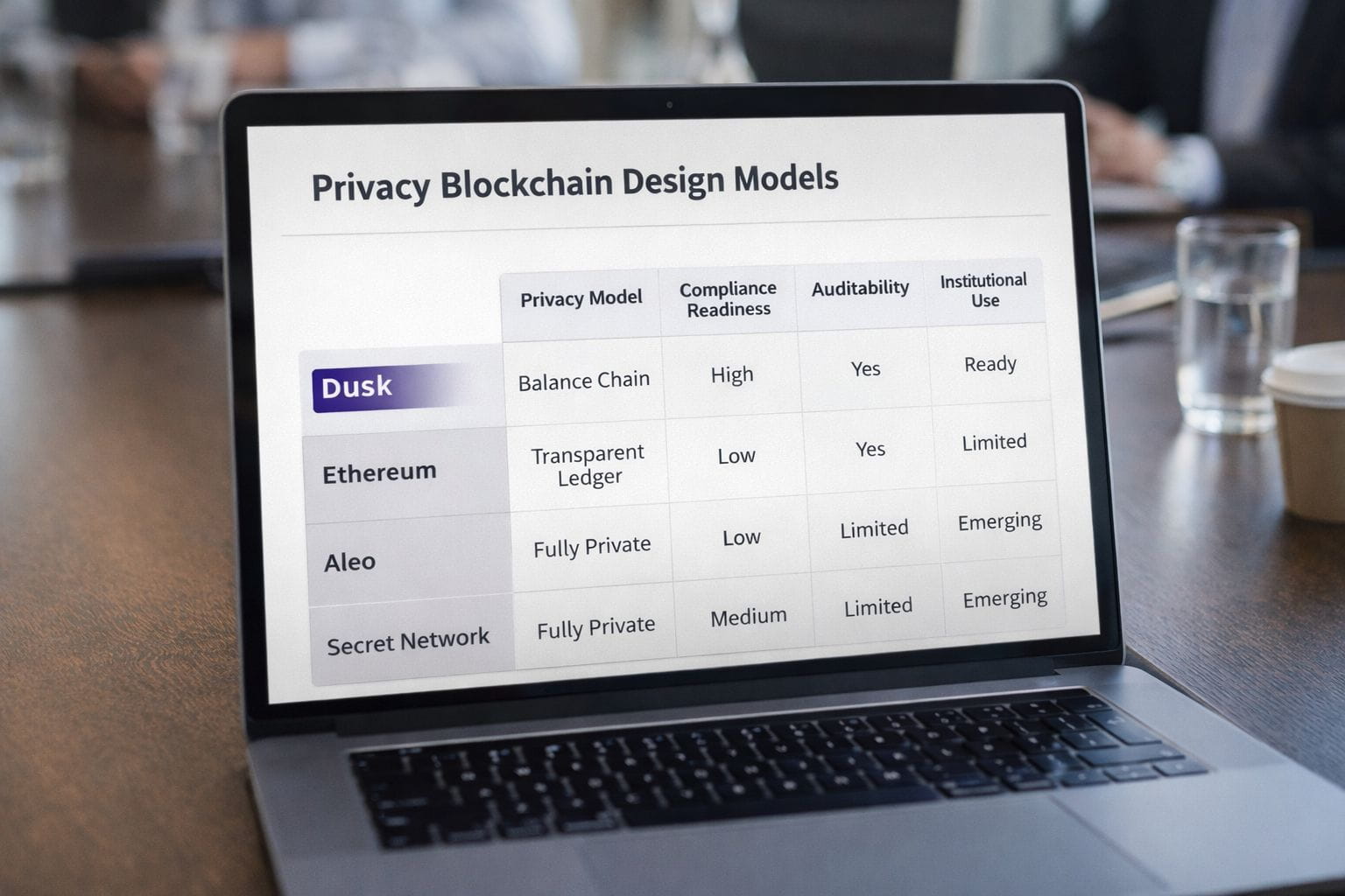 Privacy focused blockchains are often grouped together but my analysis shows their goals differ significantly. Aleo lets developers build apps with privacy built in. Aztec works on making Ethereum more private by adding a new privacy layer. Secret Network takes a different approach it encrypts everything inside smart contracts so user data stays protected. Dusk's objective is narrower and in some ways more ambitious. It is designed for regulated financial use cases where selective disclosure is more important than full anonymity. Institutions do not want invisible transactions. They want controlled visibility. The World Economic Forum's 2023 report on institutional DeFi pointed out something big is regulated markets need selective transparency. That is the real key. Fully public or fully private systems both introduce challenges at scale. Dusk's architecture sits deliberately in the middle where regulatory comfort is highest.