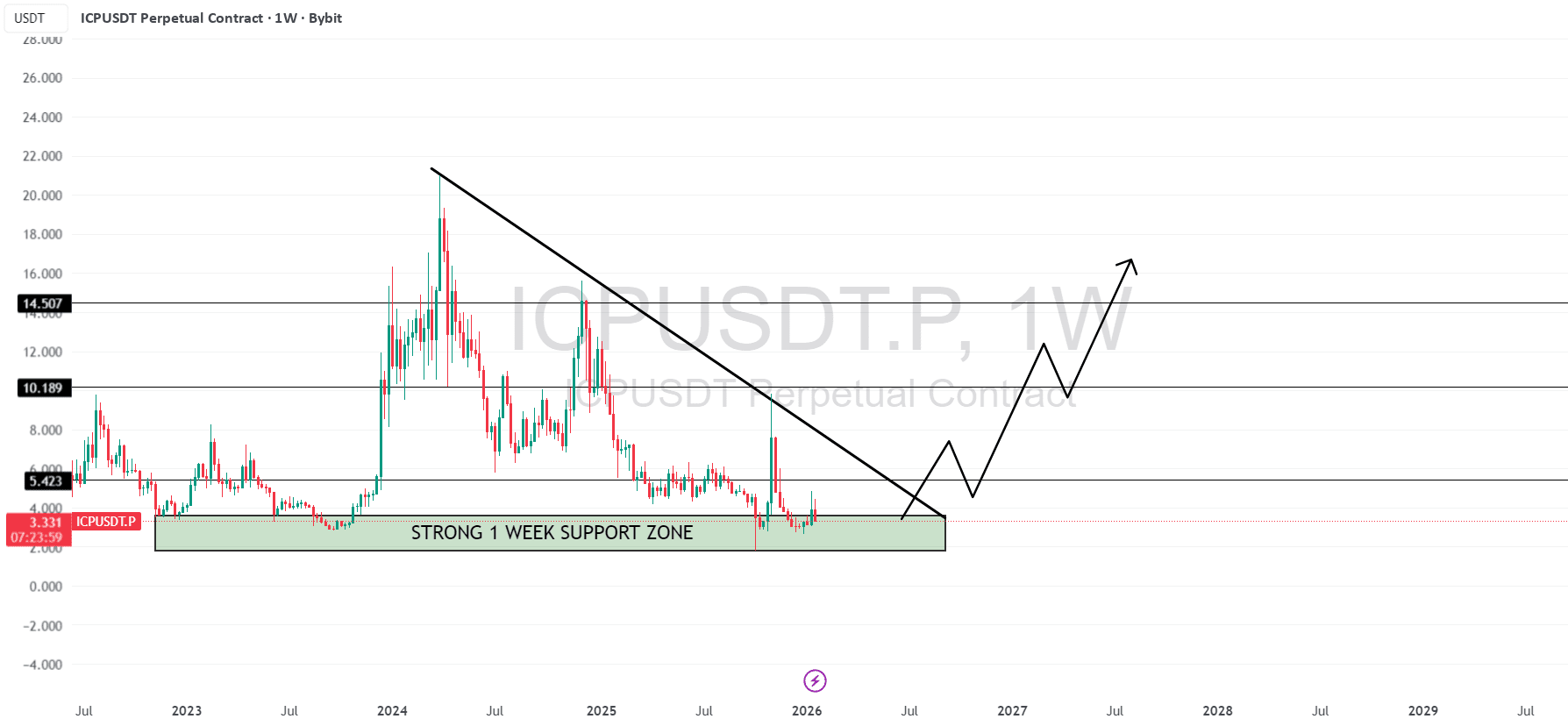 📌 ICP Технический Анализ: цена сильно упала, отвергнув 3 раза трендовую линию. цена упала с области 20 до диапазона 3 за многолетний цикл. в настоящее время цена торгуется около 4.41, так как начинает показывать признаки структурного восстановления.