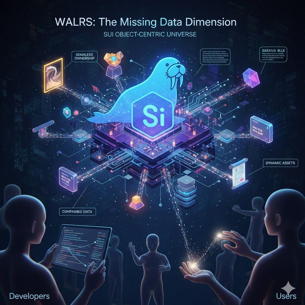 The most profound strength of Walrus lies not merely in its technical capabilities as storage, but in its deep, philosophical, and structural alignment with the very core of Sui's architecture—the object-centric data model. This is not a forced integration or a compatibility layer built after the fact; it is a native alignment that makes Walrus feel like a natural, seamless extension of the Sui environment itself. In Sui's world, everything is an object—a discrete package of data with a unique ID, defined attributes, and clear ownership, enabling parallel execution and fine-grained control. Walrus extends this elegant paradigm beyond the chain. When data is committed to the Walrus network, it doesn't just vanish into a decentralized abyss; it generates a corresponding, living data object on the Sui blockchain. This on-chain object is not a simple pointer or hash; it is a rich asset that holds the cryptographic commitments to the data, its storage parameters, and, most importantly, its ownership and access logic. This creates a powerful unity: the off-chain data blob and its on-chain representative are two facets of a single entity, governed by the same rules.