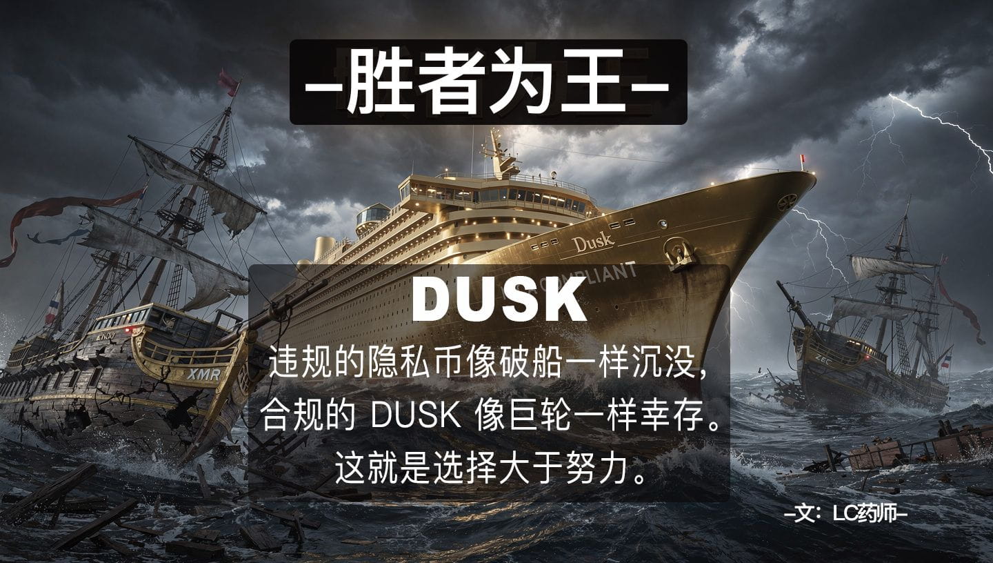 但是,这恰恰是 Dusk 最大的机会。很多人没看懂,监管层杀死的不是“隐私”,而是“无法无天的隐私”。在这场血腥的清洗中,Dusk 不仅不会死,反而会成为唯一活下来的“招安将军”。