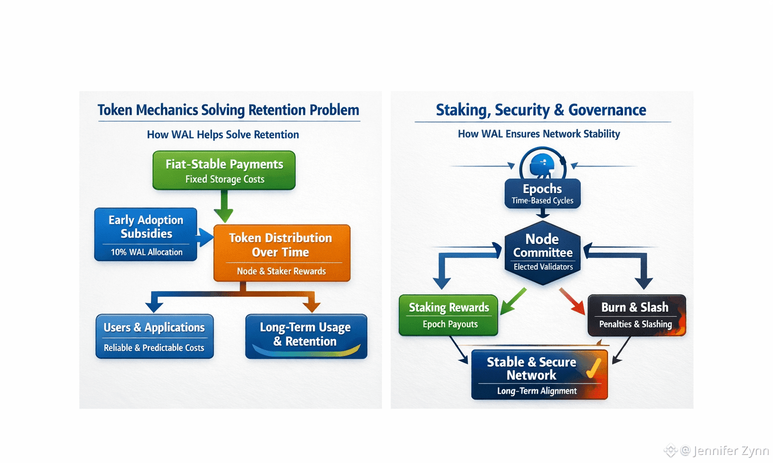Staking is the second big piece, and this is where security and keeping users actually overlap. Walrus says delegated staking is the backbone of their security. Anyone can stake WAL, whether or not they run storage nodes themselves. Nodes try to attract more stake, and that stake decides how much data comes their way. Both nodes and those who delegate earn rewards based on their actions, and once it’s up and running, slashing will keep everyone honest. The idea is pretty straightforward, but the effect is clear: staking isn’t just about chasing yield. It’s a signal. The more the market trusts a node, the more responsibility—and opportunity—it gets.