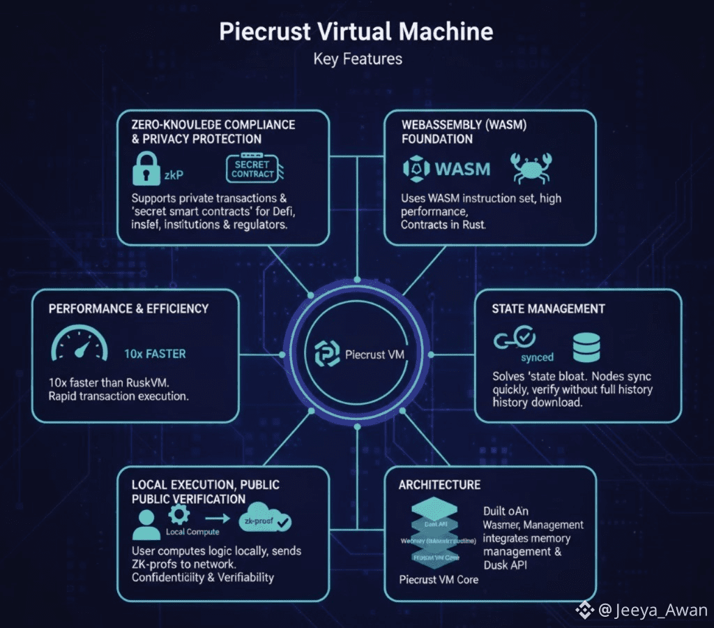 ✓ WebAssembly (WASM) Foundation: Piecrust uses the WASM instruction set, providing high performance and portability, and allowing developers to write contracts using languages such as Rust.