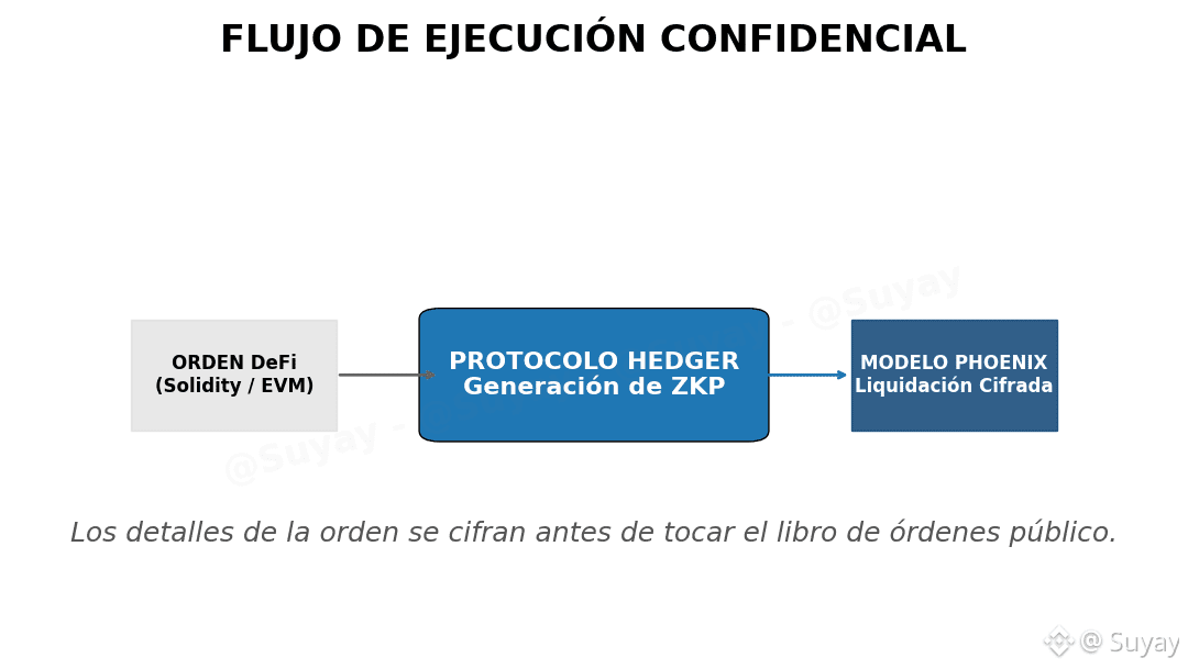 En Phoenix, los detalles de una transacción (emisor, receptor y cantidad) están cifrados. Esto permite que una orden se procese y valide criptográficamente sin que el contenido de la misma sea expuesto en el libro de órdenes público. Para un inversor institucional, esto significa que puede mover grandes bloques de activos sin alertar a los bots de arbitraje ni sufrir un deslizamiento de precios (slippage) artificial provocado por la exposición de su estrategia.