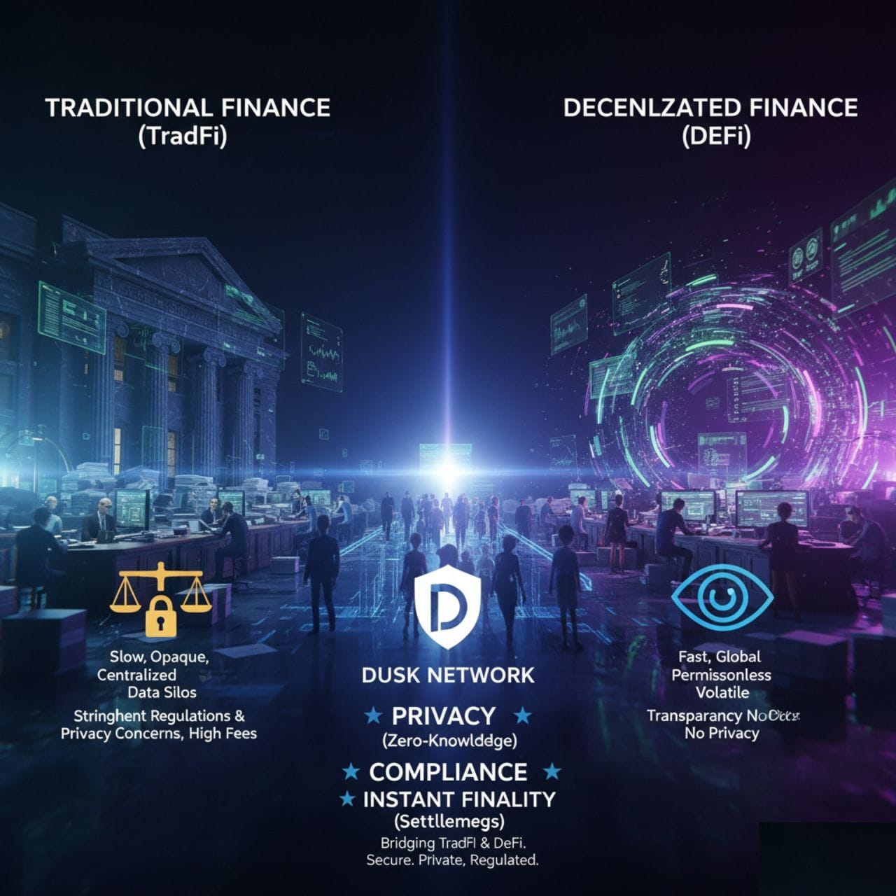 ​Dusk is a privacy-centric blockchain protocol tailored for Regulated Finance (RegFi). It provides a specialized infrastructure where financial institutions can issue, trade, and manage assets while adhering to real-world regulatory frameworks. Unlike traditional public ledgers where every transaction detail is visible to anyone with an internet connection, Dusk utilizes advanced cryptography to ensure that sensitive financial data remains confidential, while still being verifiable by regulators and authorized parties.