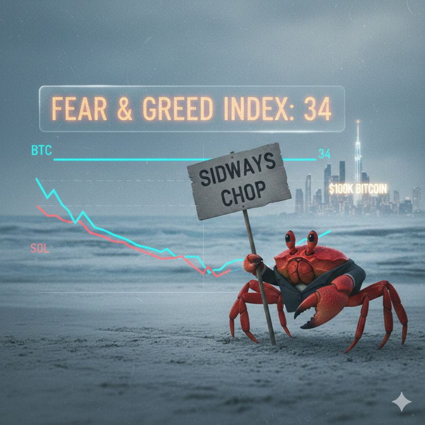 Binance Square fam, let's talk about the current market sentiment. The Fear & Greed Index is firmly in the Fear (34) zone, and frankly, it feels earned.