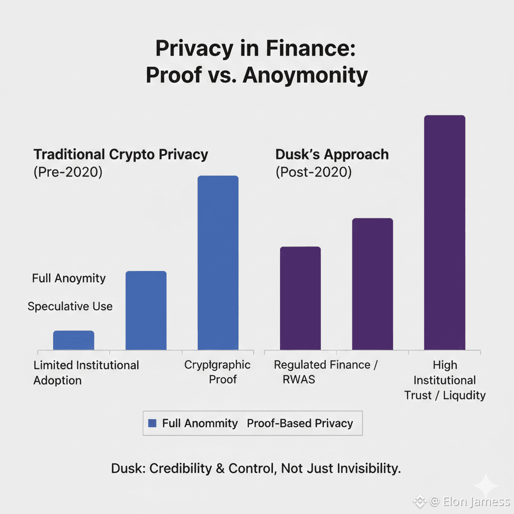 Privacy in crypto has always sounded like freedom. The idea that you could move money without anyone watching felt powerful to many people especially those who came into this market early. But after watching many projects grow struggle and even disappear a deeper truth is now hard to ignore. In real financial systems proof matters more than disappearing completely from view. And this shift is exactly where Dusk is quietly placing itself.