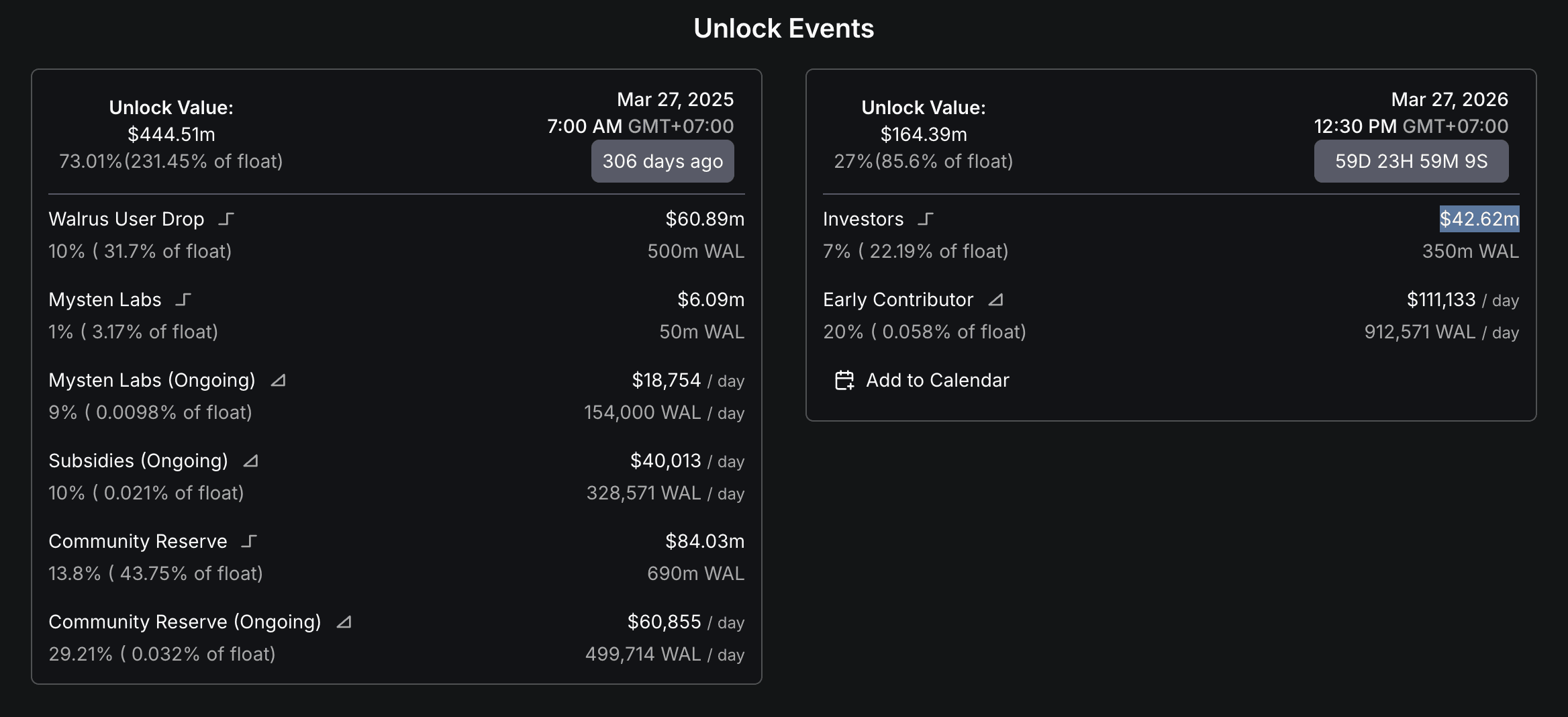 🔥 Потенциал сильного роста цен: Если Sui продолжит активно развиваться (как Grayscale запустит трасты, связанные с протоколами Sui в 2025 году), Walrus получит выгоду от фактического принятия, увеличивая TVL и использование. Тем не менее, предстоящее большое разблокирование 27/3 (350M WAL - ~$42.62m USD) может вызвать сильное падение цен в краткосрочной перспективе – шанс на покупку для держателей с долгосрочной верой!