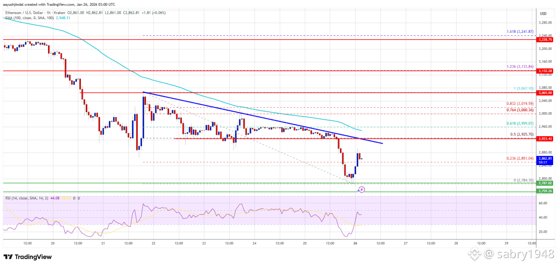 · تتشكل خط اتجاه هبوطي بمستوى مقاومة عند 2920 دولار على الرسم البياني للساعة لزوج ETH/USD.