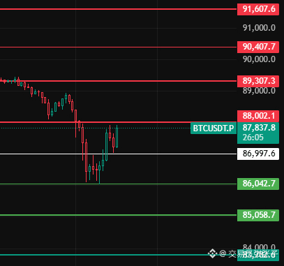 如果今天1小时级别跌破87000这个位置后收不上来,那这波触底反弹结束,再次回踩下方支撑位留意86050-85060-83780这几个位置附近!#BTC走势分析