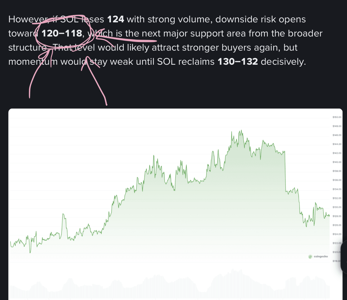 Позвольте мне поделиться с вами живым доказательством. Сначала я делюсь изображением, на котором я сделал прогноз на 118, если SOL пробьет зону поддержки и дойдет до этого уровня.