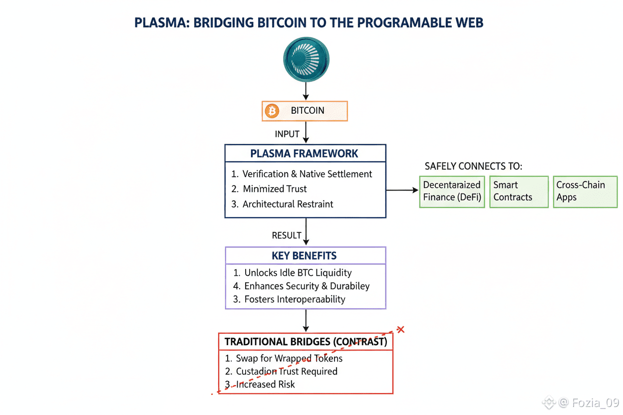 In the end,Plasma changes how we approach Bitcoin interoperability.It moves away from wrapping,custody,or vague trust, and focuses on structure,proof,and native connections.For me,this isn’t just a technical upgrade it’s a return to the values that made Bitcoin matter in the first place.Bridging Bitcoin to the programmable web doesn’t mean giving up its principles.Plasma proves you don’t have to.