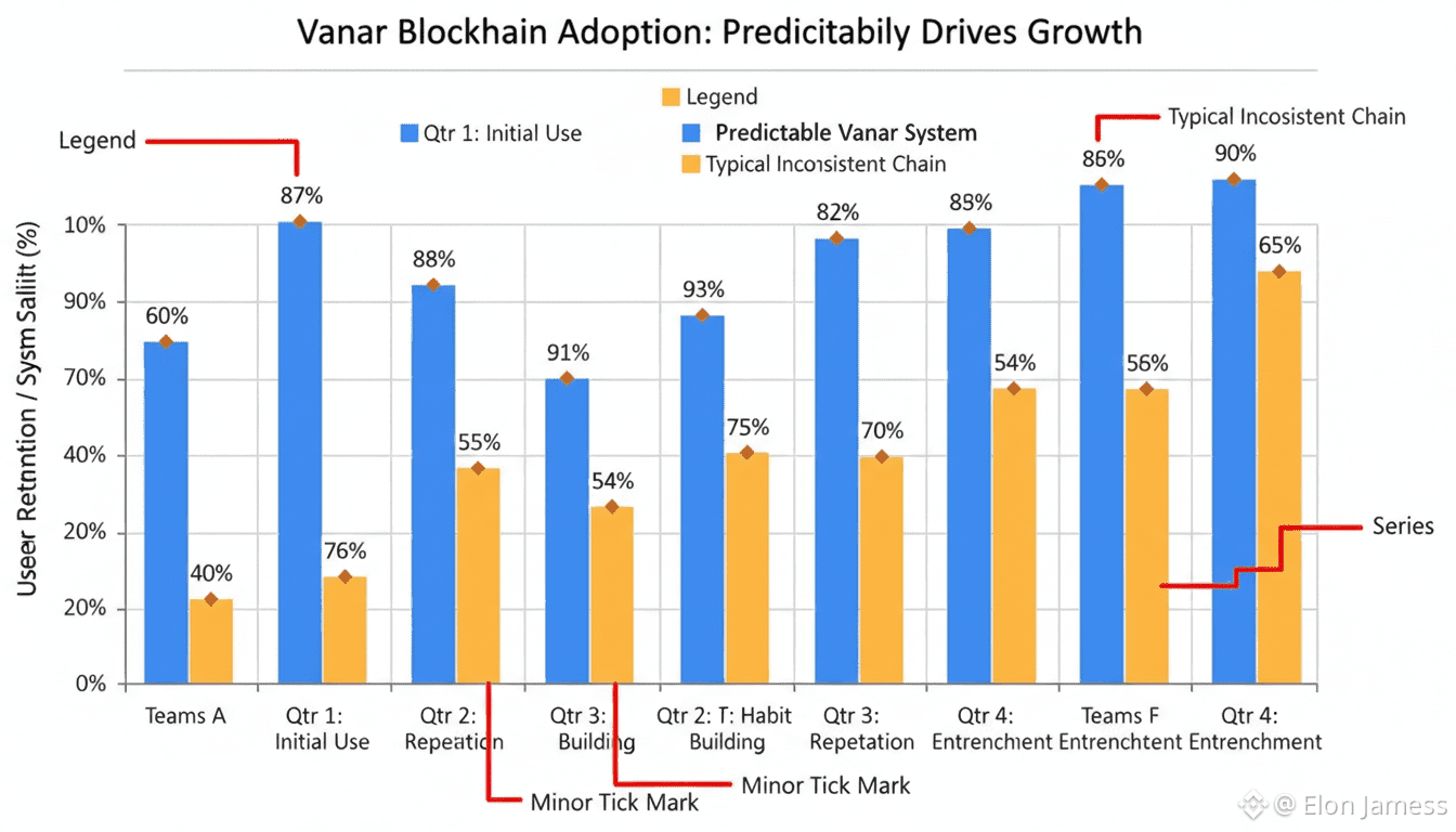 Vanar looks at adoption through a different lens It does not try to be the most flashy or innovative chain at first Instead it aims to be predictable predictable enough that both developers and users can rely on it without constantly reconsidering their choices Adoption is not about excitement it is about repetition