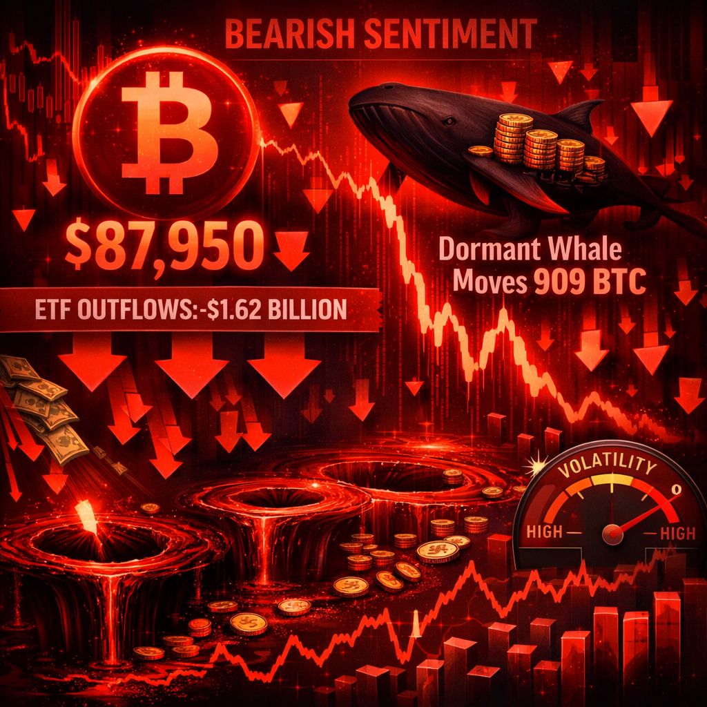 Massive outflows from Bitcoin ETFs spark a brutal market swing driving BTC below key levels while dormant whales wake up bearish price action intensifies with structural whale shifts and renewed risk‑off dynamics