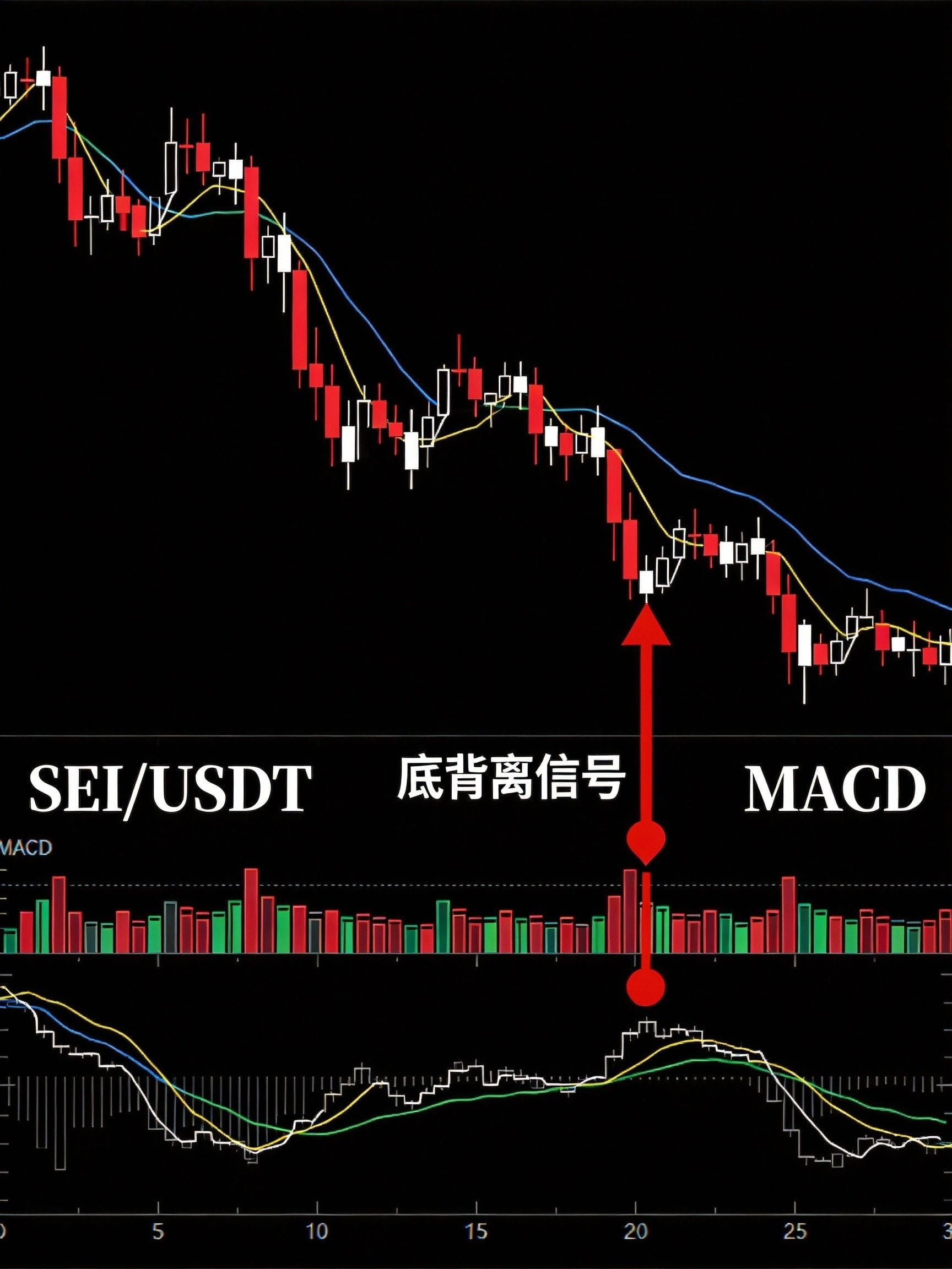 Рисунок 2: $SEI Область нижнего расхождения MACD, быстрая линия начинает выравниваться.