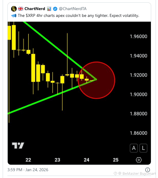 ChartNerd’s analysis emphasizes the buildup of liquidity pressure, noting that volatility is expected once these levels are tested. A breakout above $1.95 could challenge higher resistance zones and trigger stop-loss orders clustered above. Conversely, a drop below $1.9 may test lower support levels and force leveraged liquidations.