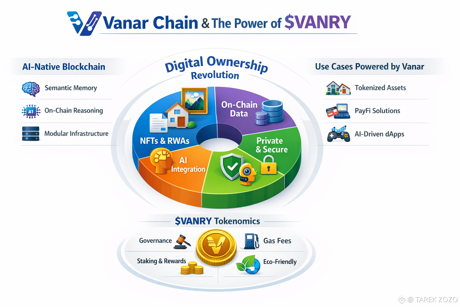 Powered by the native token $VANRY, the ecosystem fuels everything from gas fees to governance and rewards. $VANRY isn't just a utility token—it's the backbone of an eco-friendly, high-performance chain designed for mass adoption. Whether tokenizing real estate, enabling AI-driven financial services, or powering immersive gaming experiences, Vanar makes digital ownership practical, secure, and intelligent.