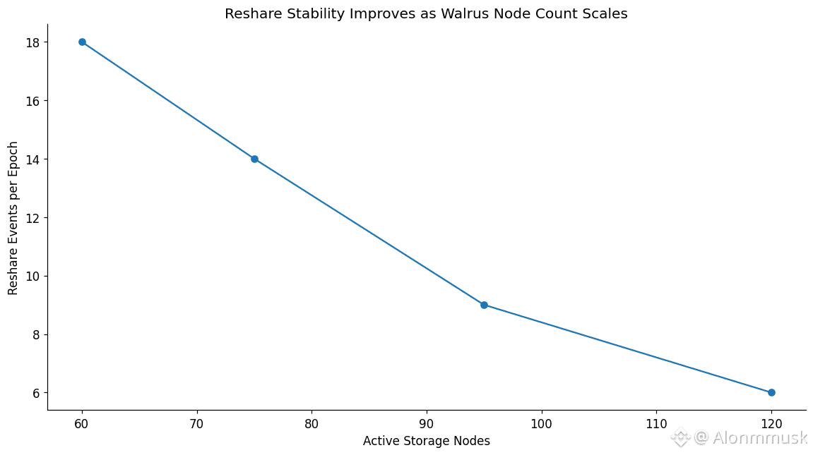 One of the more practical design choices is how it handles redundancy. Instead of brute-force replication, it uses erasure coding. A file gets broken into fragments with extra parity data, so you don’t need every piece to reconstruct it. Lose some nodes, the data still comes back. Based on their late-2025 reports, this approach slashed storage overhead compared to full replication. There’s also the reshare process, which quietly redistributes data as nodes come and go. That went live around mainnet and helps keep availability stable without users needing to babysit their uploads. The trade-off is more computation upfront, but the payoff is lower long-term costs and fewer nasty surprises. Recent metrics showing sub-two-second retrieval for 100MB blobs line up with that design choice actually working in practice.