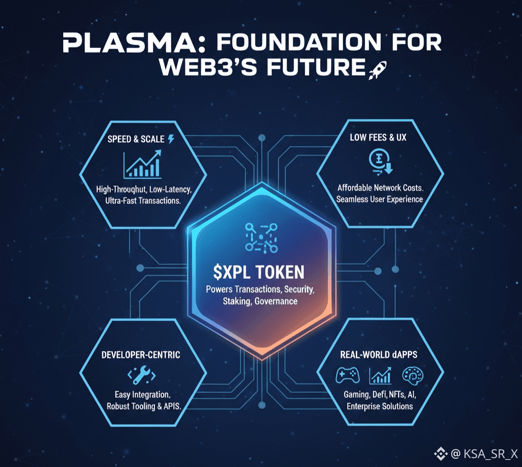 At its core, Plasma focuses on fast transaction processing, low fees, and seamless integration for developers. This makes it an ideal environment for building next-generation Web3 products such as blockchain games, DeFi platforms, NFT ecosystems, AI-powered dApps, and enterprise-grade solutions. Instead of forcing users to adapt to complex blockchain mechanics, Plasma prioritizes a smooth and intuitive user experience.