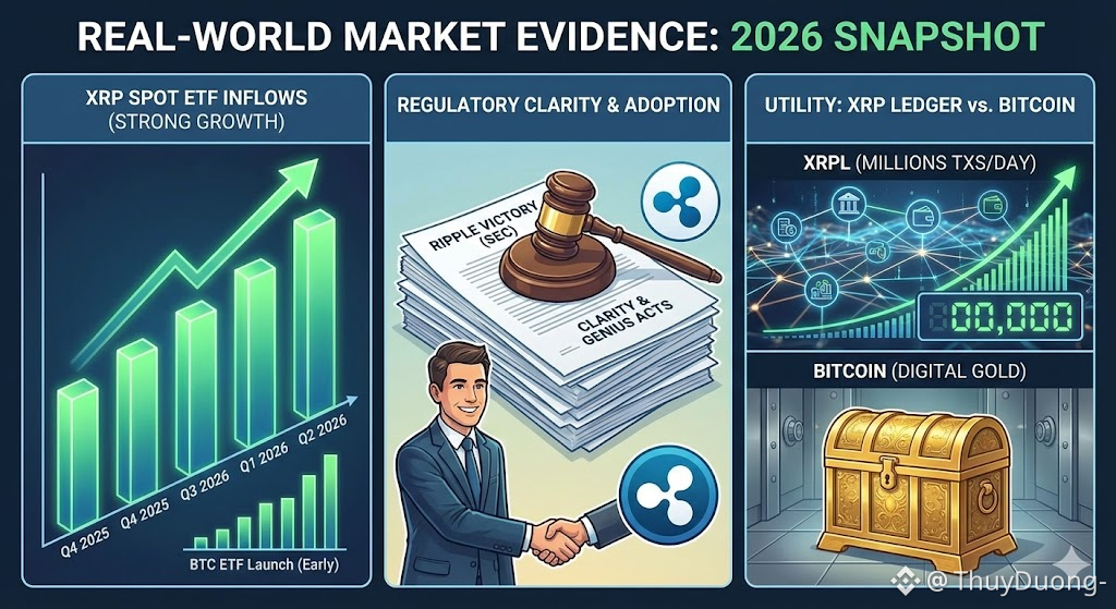 Hiệu ứng domino đang dần hình thành. Năm 2026 có thể là bước ngoặt khi utilityadoption tổ chức lấn át vị thế truyền thống của Bitcoin. Nhà đầu tư nên theo dõi inflows ETF XRP, động thái Ripple, biến động macro và yen carry trade.