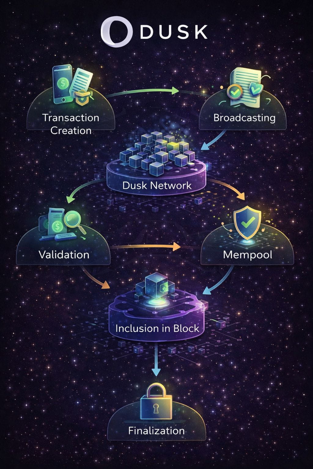 In essence, Dusk transforms blockchain transactions from opaque technical events into transparent, trackable financial processes. Each stage — from creation to finality — is designed with the assumption that real money, real institutions, and real regulatory frameworks are involved. That philosophy sets Dusk apart as infrastructure not just for decentralized applications, but for the next generation of compliant, onchain financial markets.