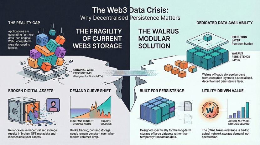Кризис данных больше не является теорией. Он происходит сейчас, с реальными сломанными активами и разочарованными пользователями. Решения, такие как Walrus, предлагают путь вперед: специализированная, децентрализованная инфраструктура, разработанная специально для постоянства, а не адаптированная от систем, созданных для других целей.