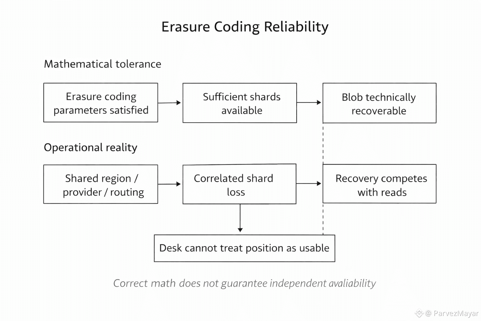 Shards are where they should be, on paper. Walrus Erasure coding still makes reconstruction possible, on paper. The onchain side still has the claim. The proof-of-availability record might even be clean for the window you paid for.
