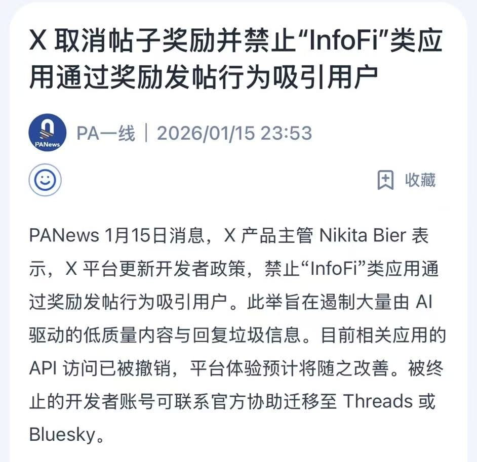После того как руководитель продукта X Никита Бир заявил, что платформа X обновляет политику для разработчиков, запрещая приложениям типа "infofi" привлекать пользователей через вознаграждение за публикации, все создатели контента закричали: "Криптоубийство мертво!"