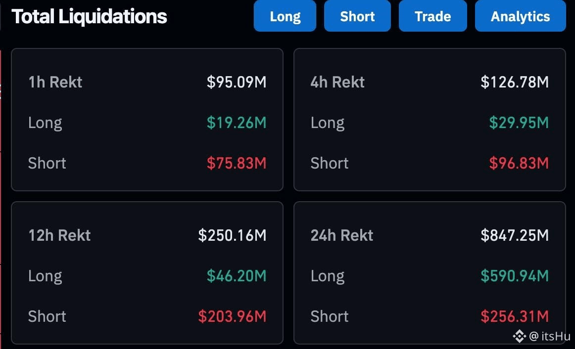 ~850 triệu USD lệnh đòn bẩy crypto bị thanh lý trong vòng 24 giờ qua