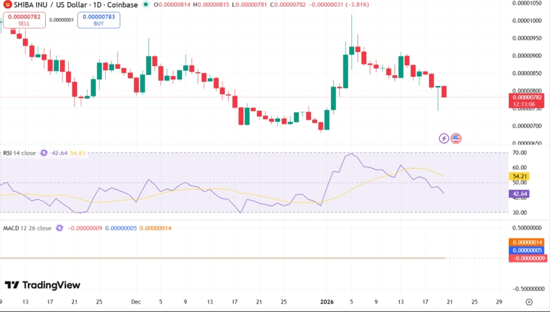 SHIB имел захватывающее начало 2026 года – он вырос на 25-32% в начале этого месяца, достигнув максимумов около $0.0000087-$0.000009! Прямо сейчас, 26 января, он торгуется около $0.0000076-$0.0000077 после небольшого отката (падение ~0.5-1% сегодня). Торговый объем остается высоким на Binance (часто $100M+ ежедневно), сообществу очень активно – недавние сжигания резко увеличились (в больших процентах!), киты накапливаются, и положительные ончейн-движения, такие как токены, покидающие биржи!