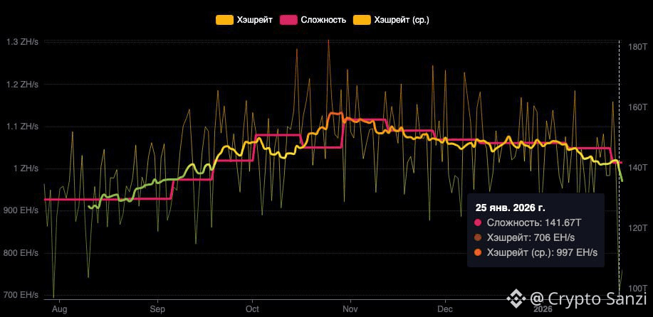 🌪🇺🇸A severe winter storm in the U.S. knocked out ~200 EH/s of mining power, sending Bitcoin’s hashrate down to 706 EH/s, the lowest in six months. Block times briefly stretched to ~12 minutes.